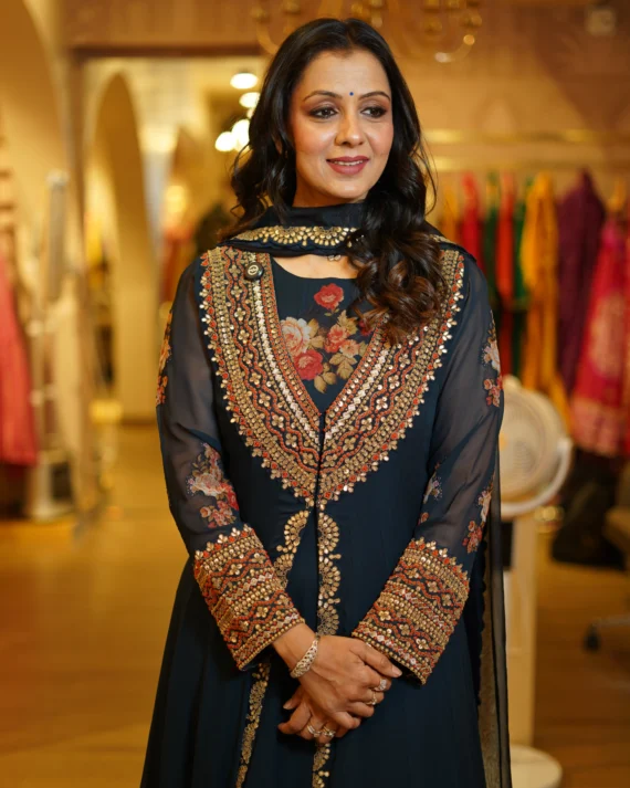 • Navy Blue Anarkali With Handwork Jacket