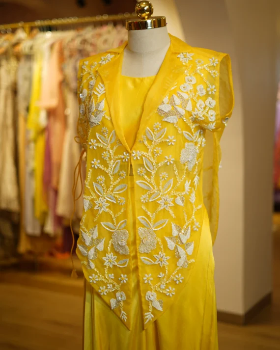 • White Hand Work Pants Bustier With One Side Drape Dupatta