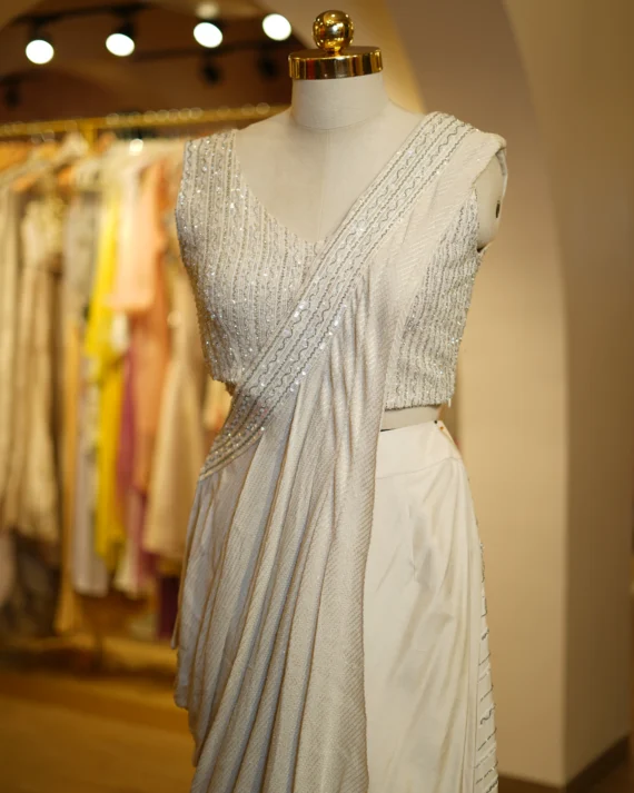 White Hand Work Pants Bustier With One Side Drape Dupatta