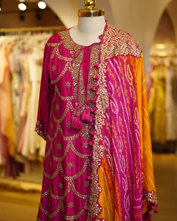 • Pink And Yellow Kurta Set