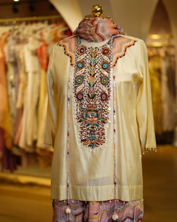 • Ivory With Pink Kurta Set