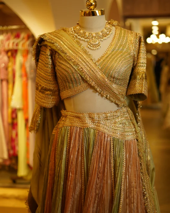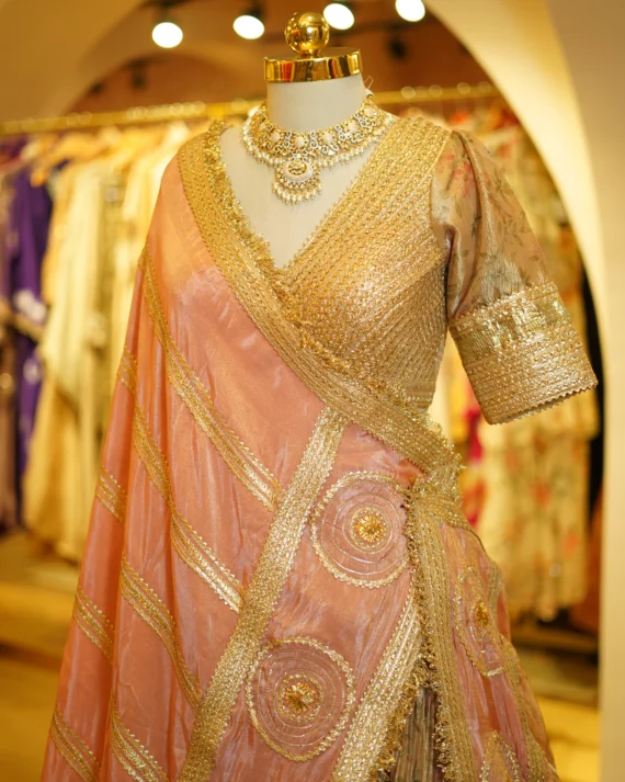 • Tissue Lehenga With Traditional Gota Work Blouse