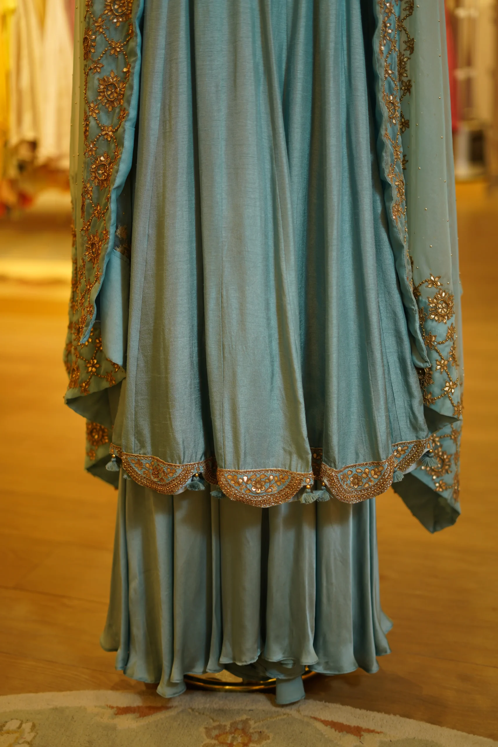 Anarkali With Stylish  Palazzo And Organza Hand Work Dupatta