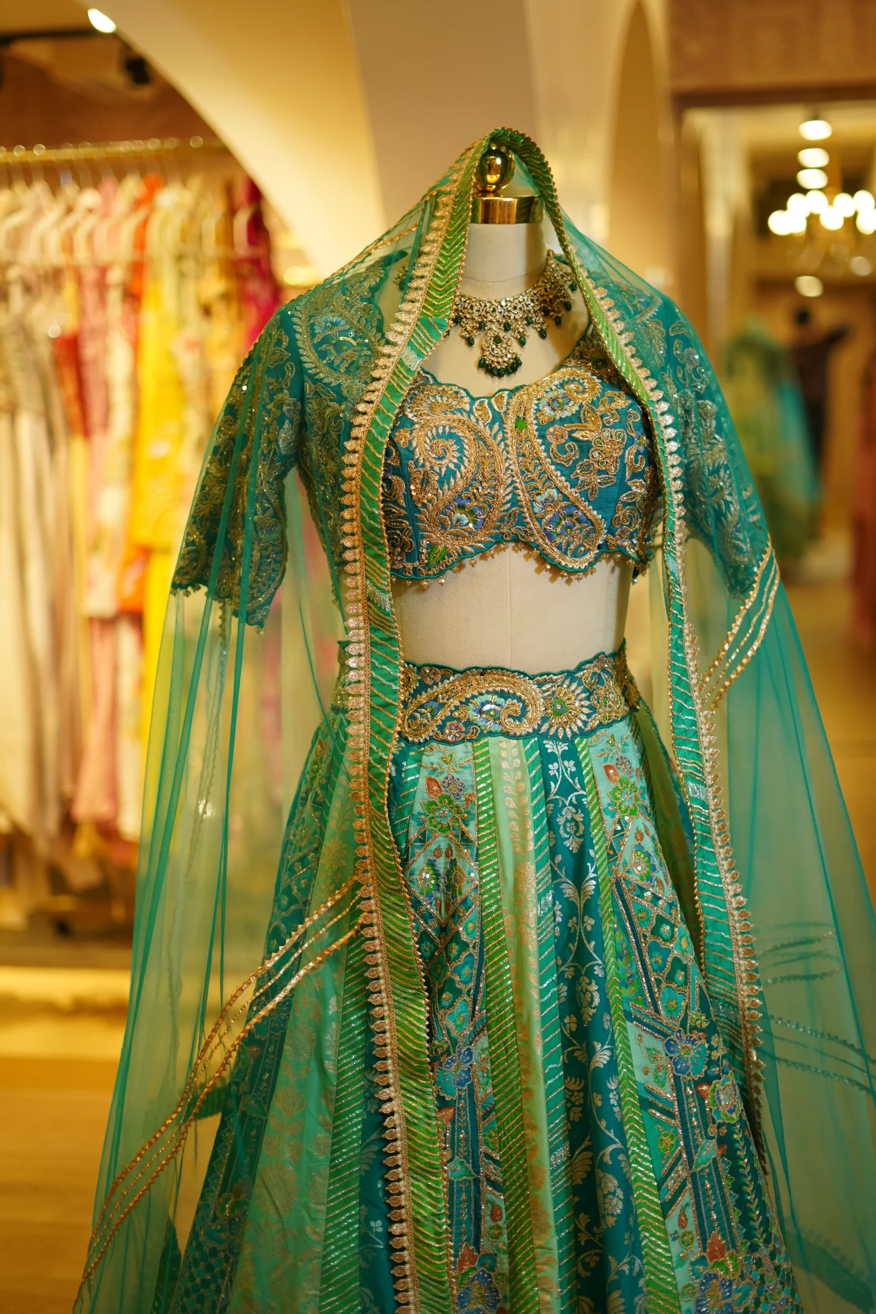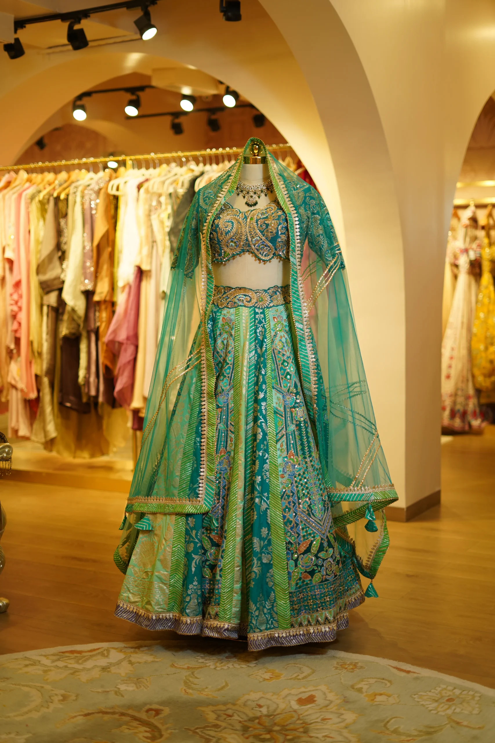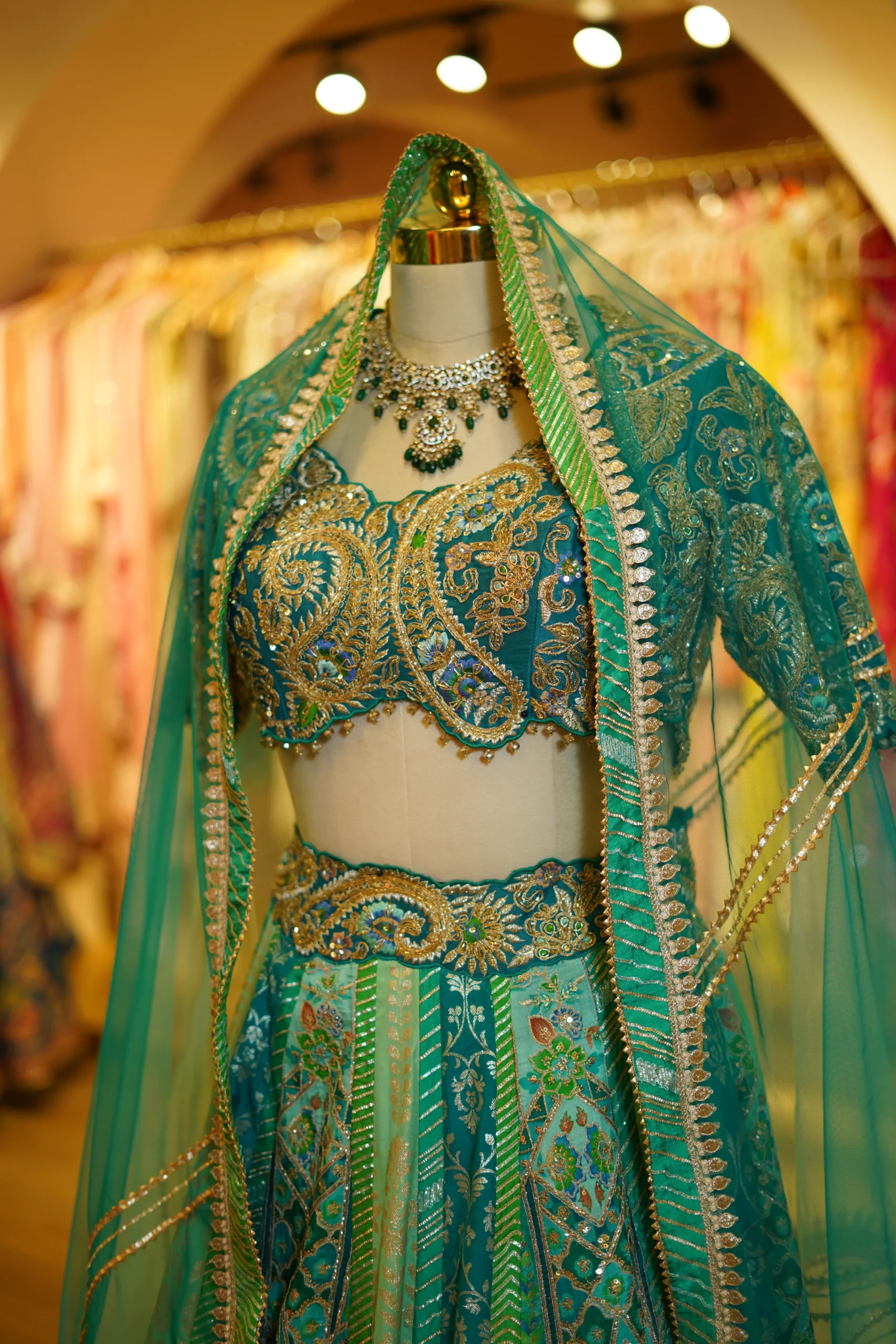 A refreshing aqua blue lehenga crafted for elegance and modern festive styling. Perfect for weddings, celebrations, and evening events.