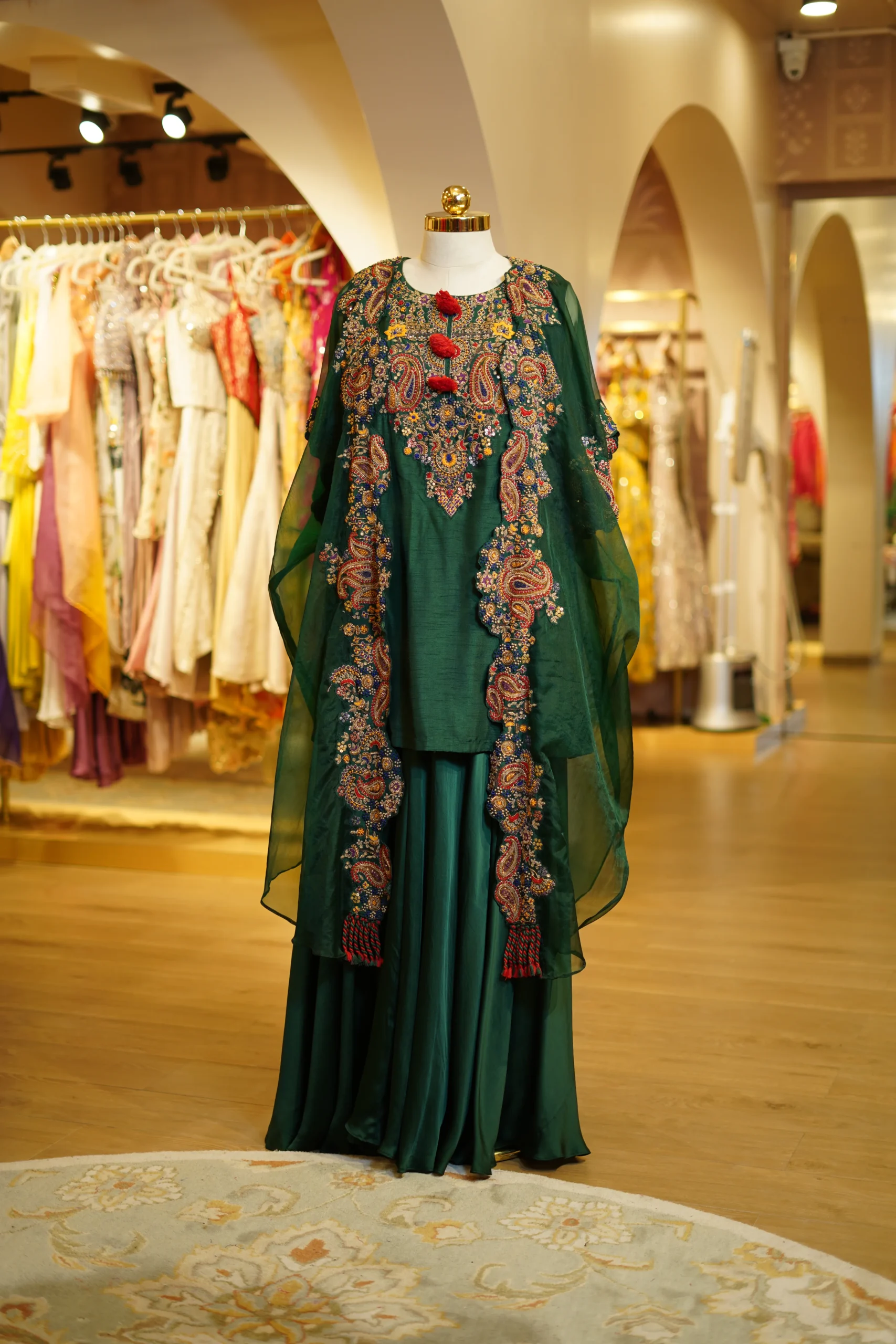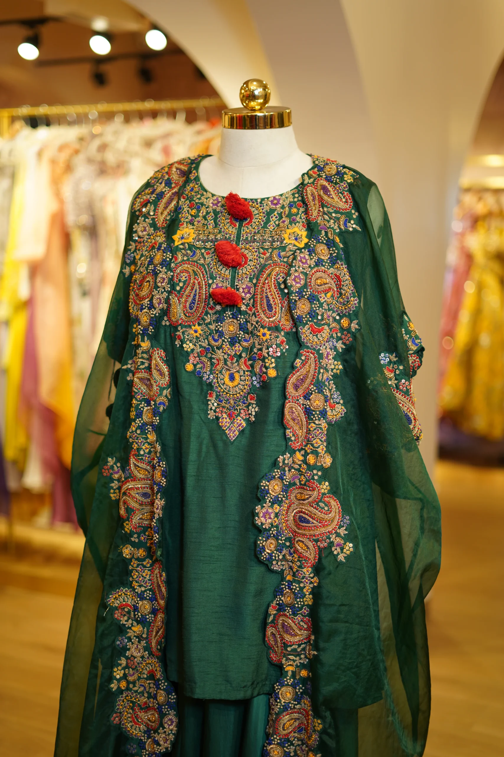 A timeless green kurta set with a versatile silhouette, perfect for everyday festive styling and celebrations.