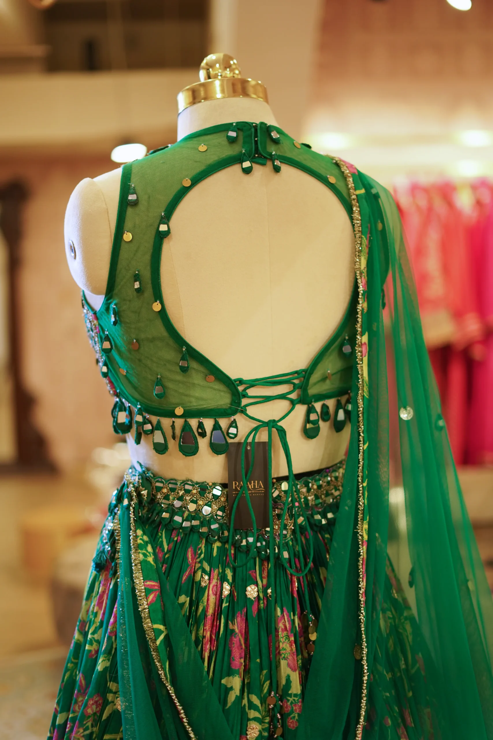 Green Printed Lehenga With Gota Work