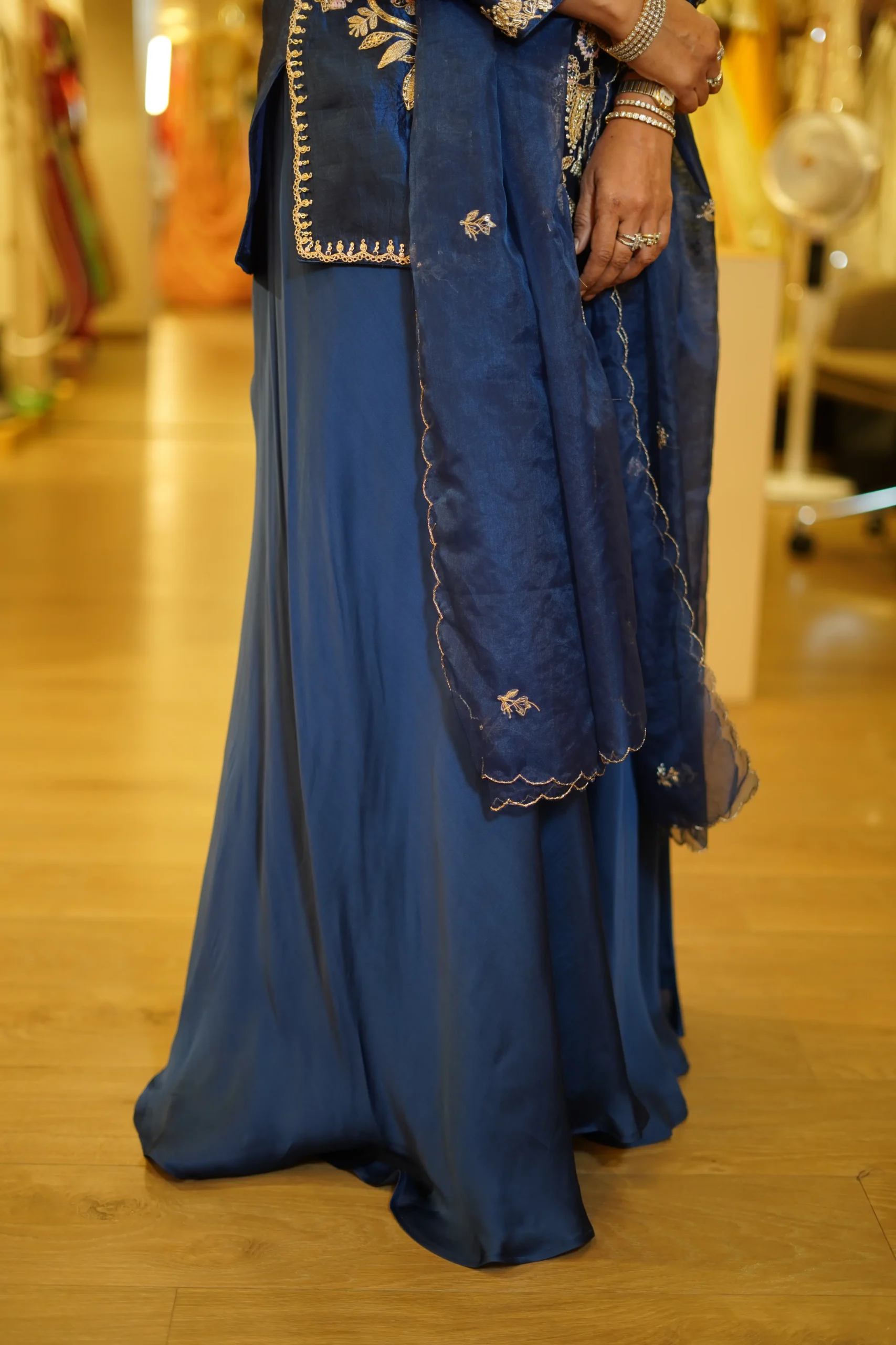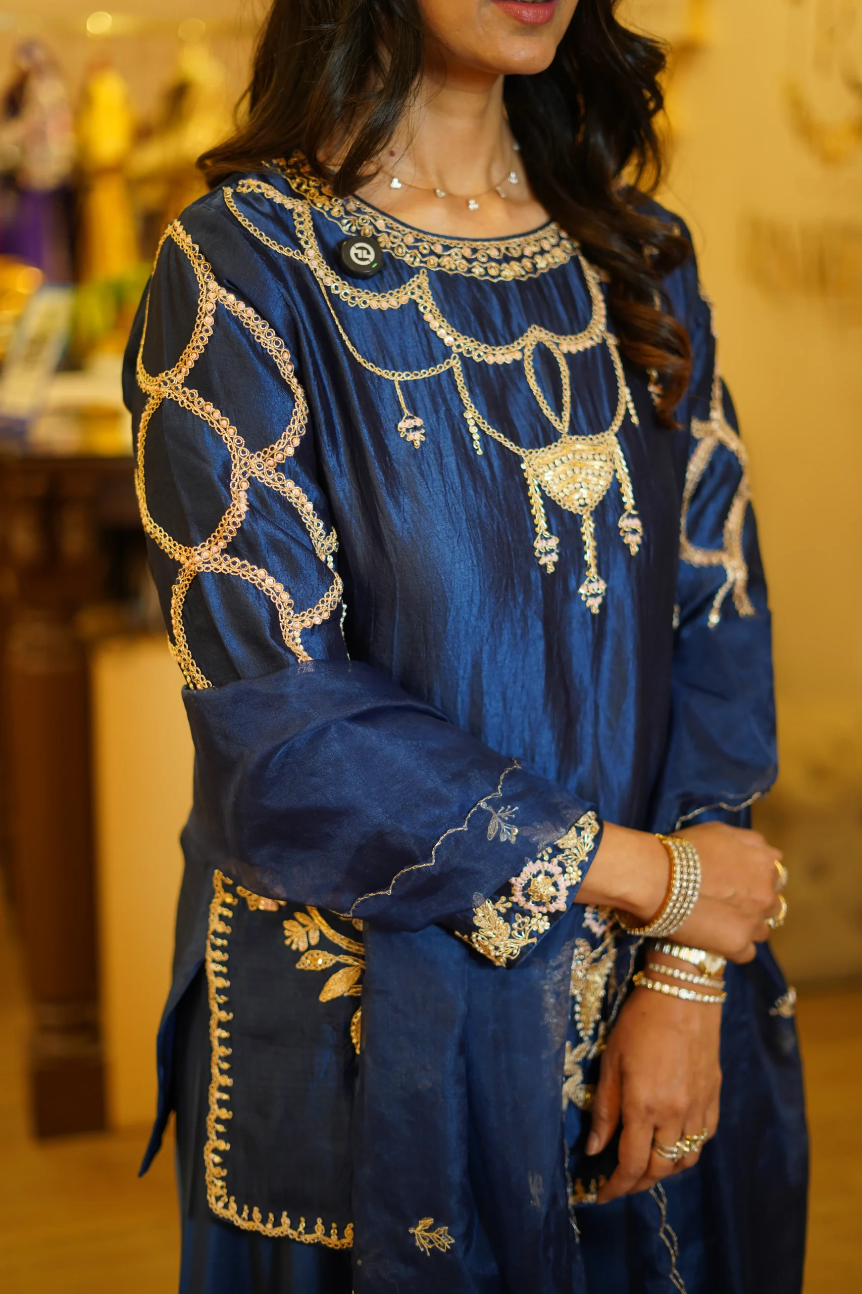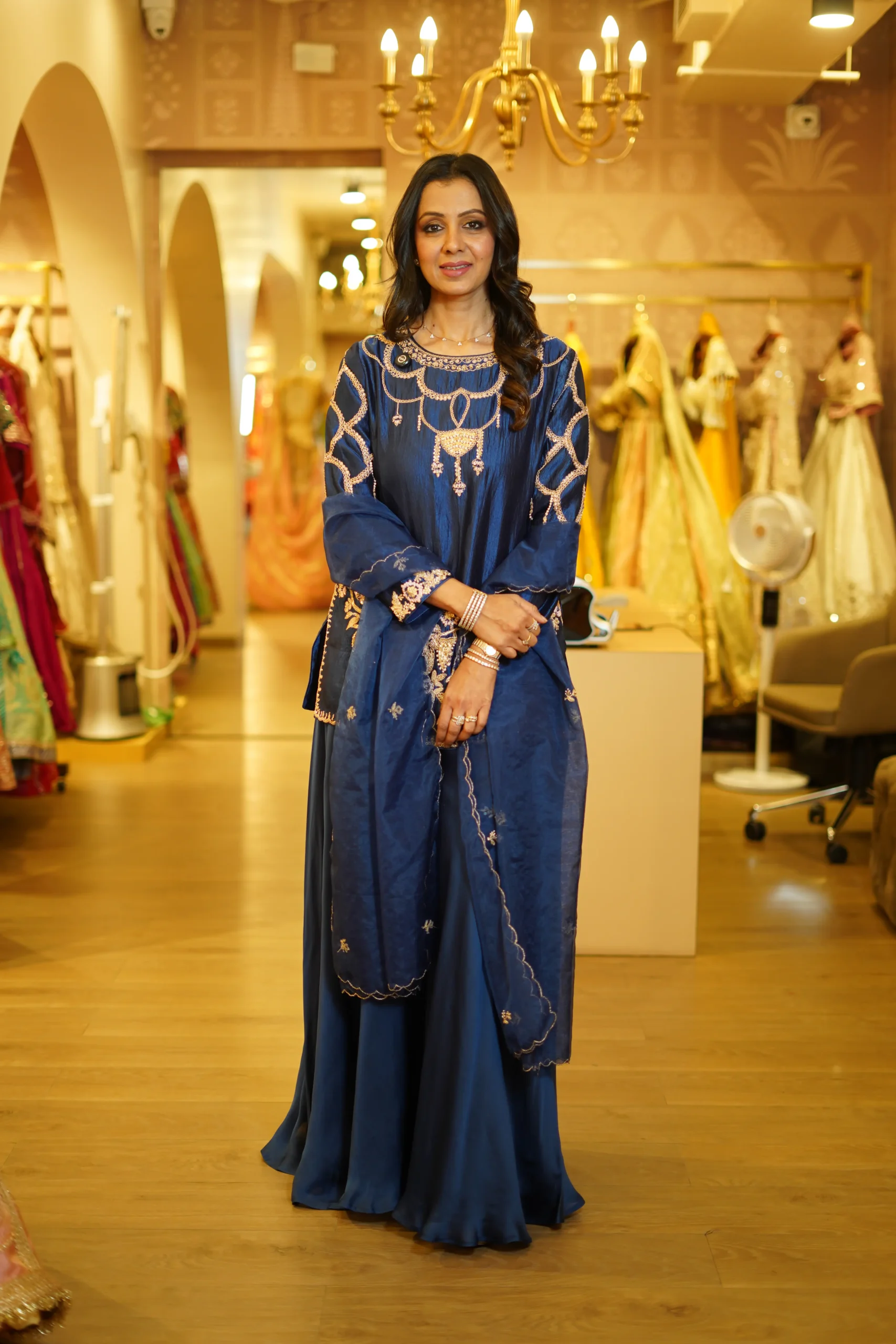 A graceful handwork kurta paired with silk palazzo pants and a sheer organza dupatta, creating an elegant festive ensemble perfect for celebrations and traditional occasions ✨💫