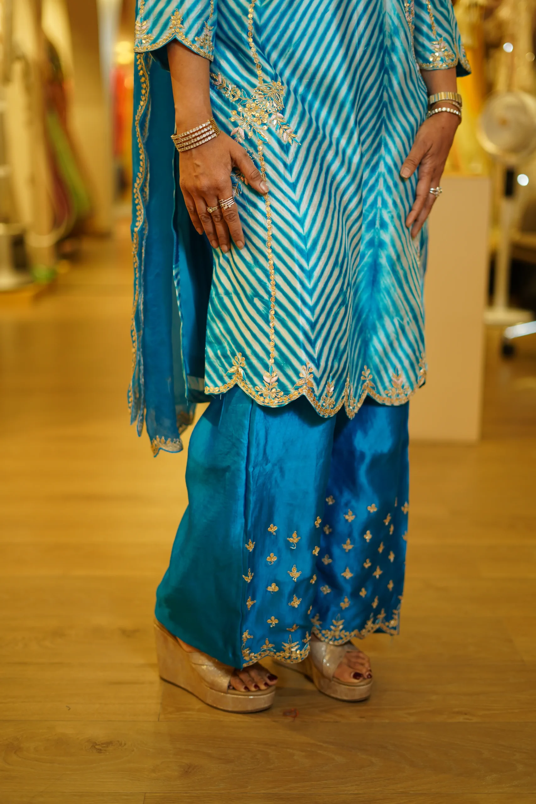Leheriya Kurta With Pants And Organza Dupatta